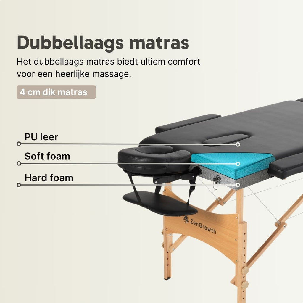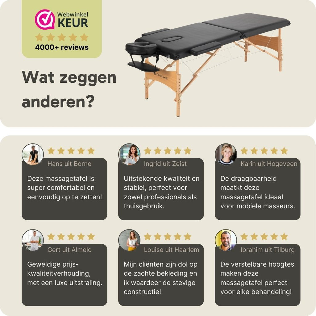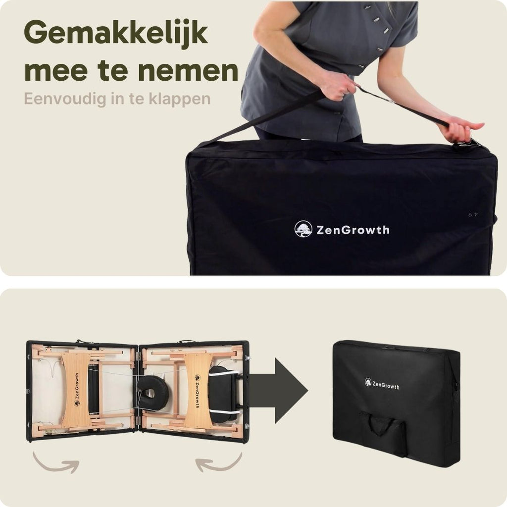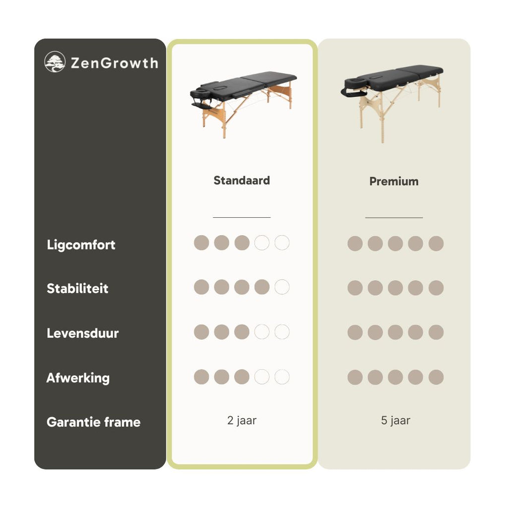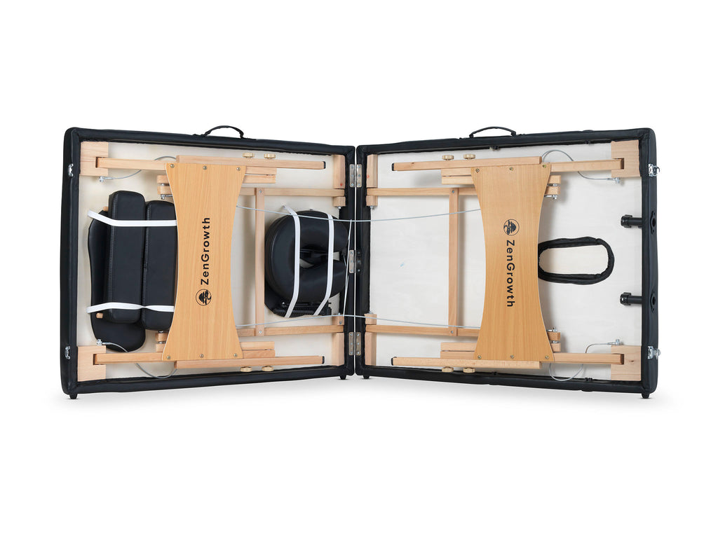 ZenGrowth's unieke compositie van scharnieren en materialen van hoge kwaliteit, zorgt ervoor dat de massagetafel stevig op de grond staat en niet kraakt of piept. Het hout wordt voor gebruik uitgebreid gekeurd op scheuren en op vochtigheid.