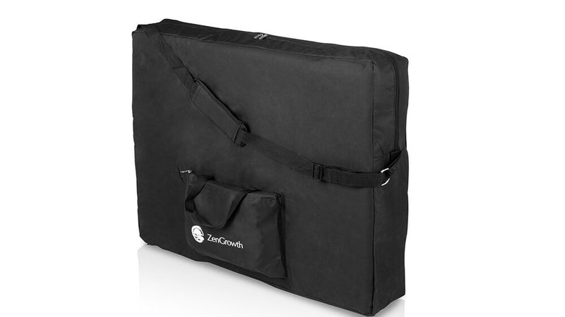 Om de massagetafel overal mee naartoe te kunnen nemen, wordt deze massagetafel geleverd met een goede draagtas. De draagtas is uitgerust met een stevige draagband, maar is van iets lagere kwaliteit dan de draagtassen van onze premium massagetafels. Ook heeft de draagtas een klein voorvak waar je bijvoorbeeld handdoekjes of massageolie in kunt opslaan.