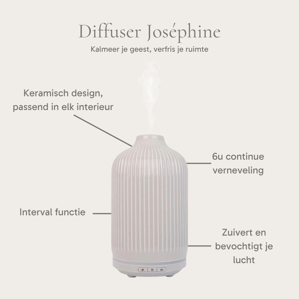 Transform any room into a haven of tranquillity with the Joséphine Diffuser. Say goodbye to dry skin, a dry throat, and a stuffy nose. The Joséphine diffuser is one of the most effective methods to distribute the scent and therapeutic benefits of essential oils throughout a space.