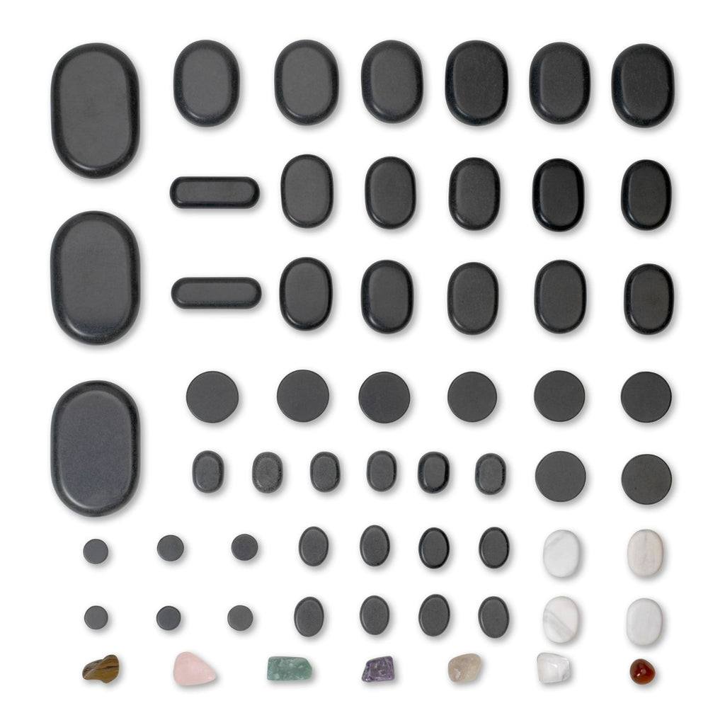 This warm set of 60 basalt stones is specially composed for hot stone massages of approximately 60 minutes. Thanks to the different sizes you can effortlessly vary during the treatment — ideal for both professional use in the practice and for relaxing massages at home.