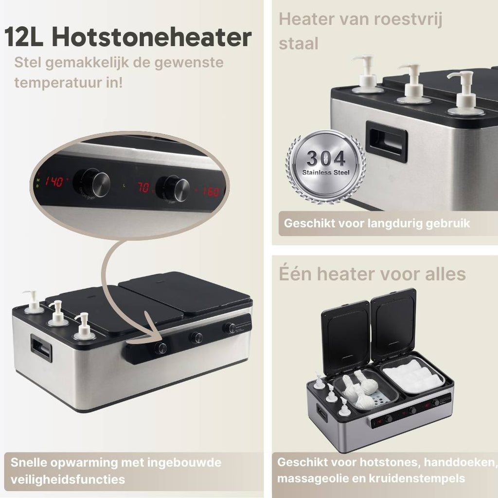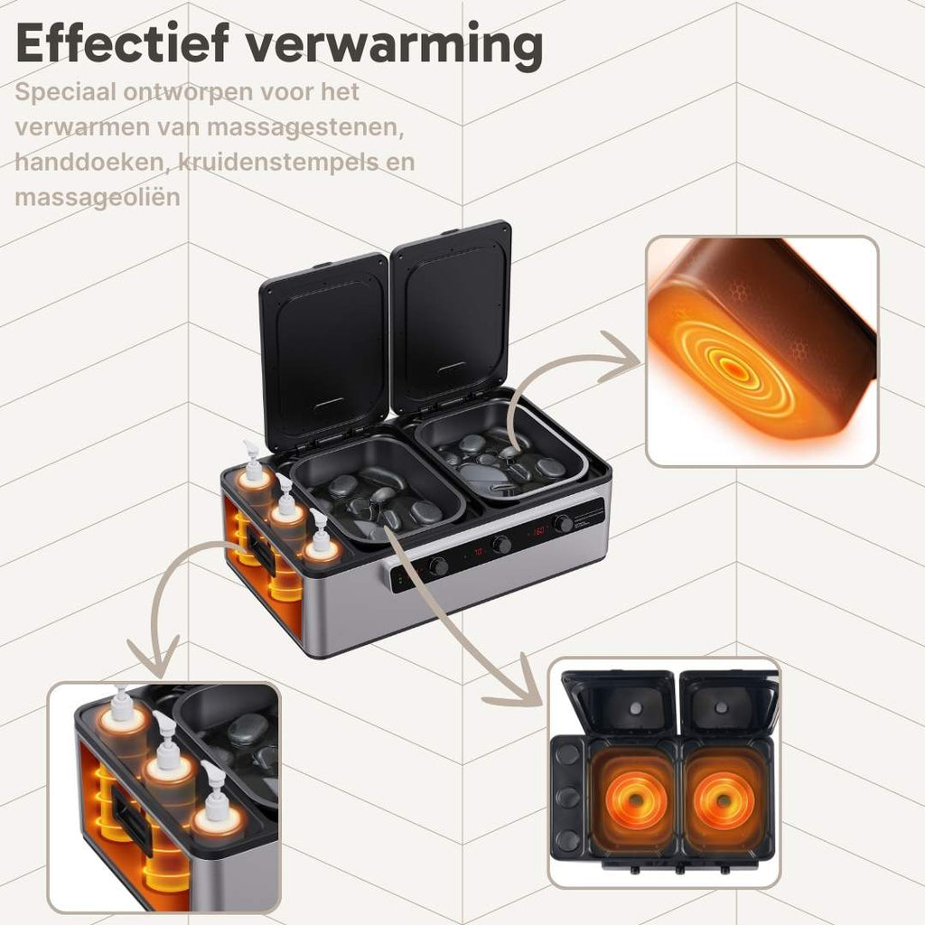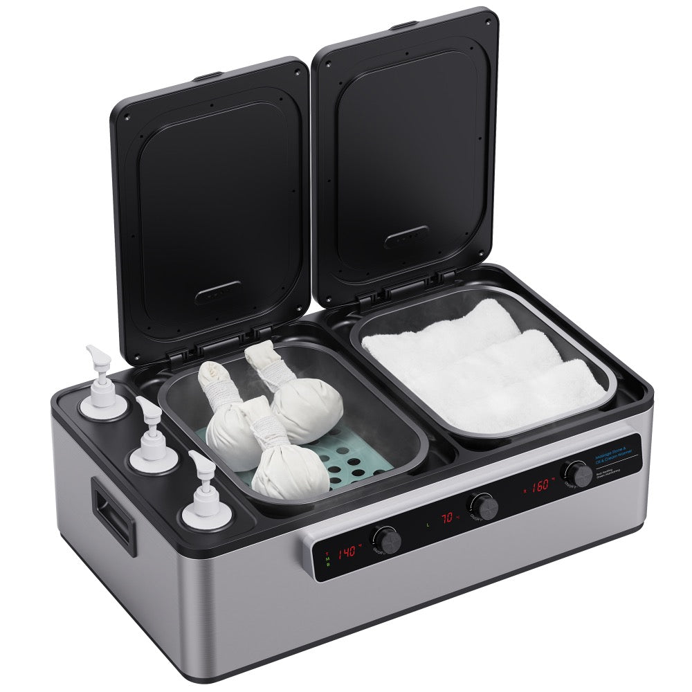 With the extended heater you can heat towels, hot stones, herbal stamps and massage oil at the same time. In short, the best way to improve your customer experience.