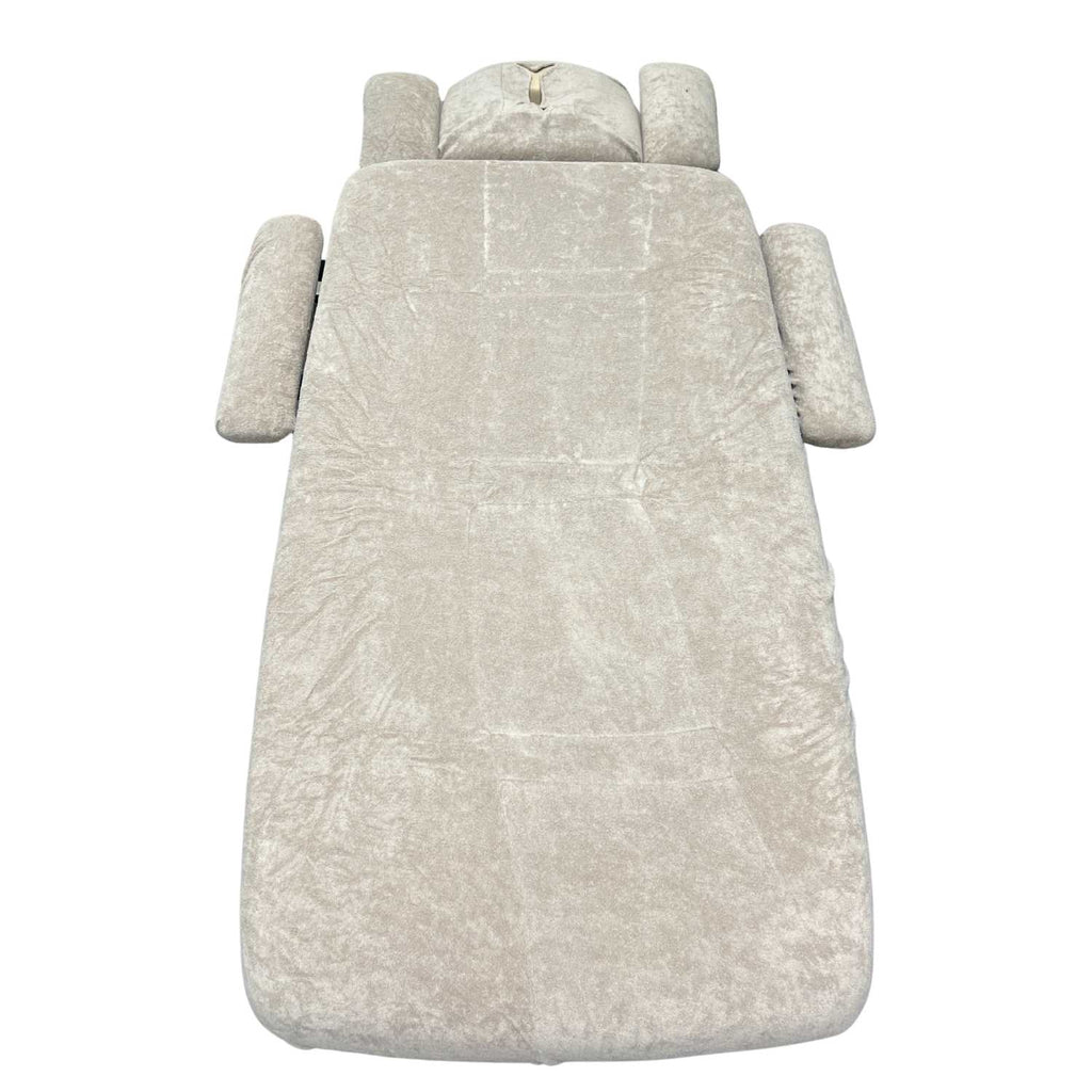 Because of the unique shape and structure of the Lagos table and our aim to provide comfort and a perfect fit, the production costs are significantly higher than our standard sheet sets. Every piece is tailored to fit precisely, including the head section, which is designed to stay in place during treatments without slipping.