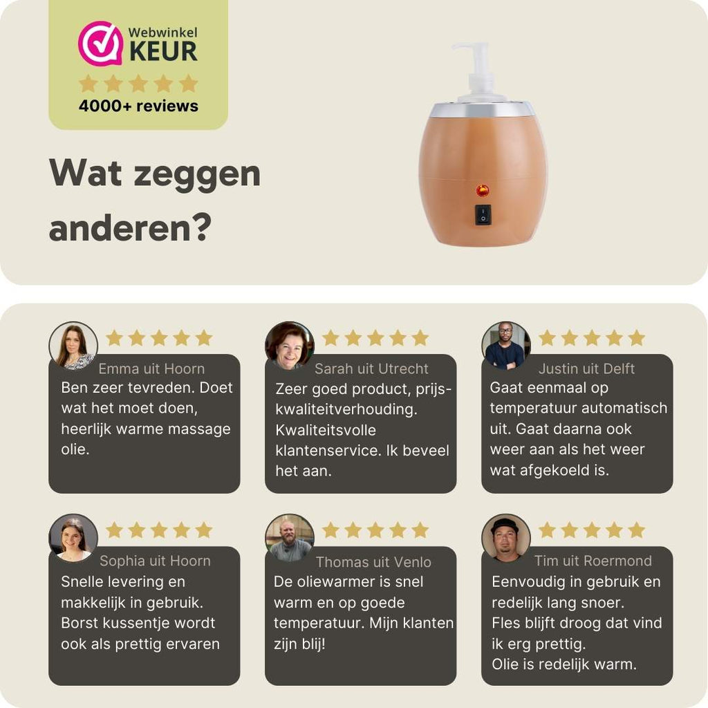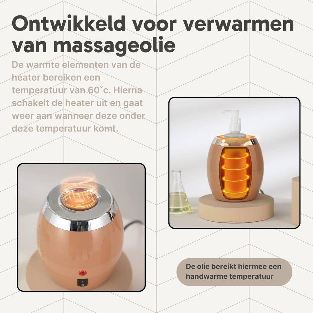 Note: The heating elements in this warmer reach a maximum temperature of 60°C. This does not mean that the oil will be heated to this exact temperature. If you need the oil to be thoroughly warm, this oil warmer may not be the best solution. However, if you're looking for a way to take the chill off the oil, this warmer is ideal.