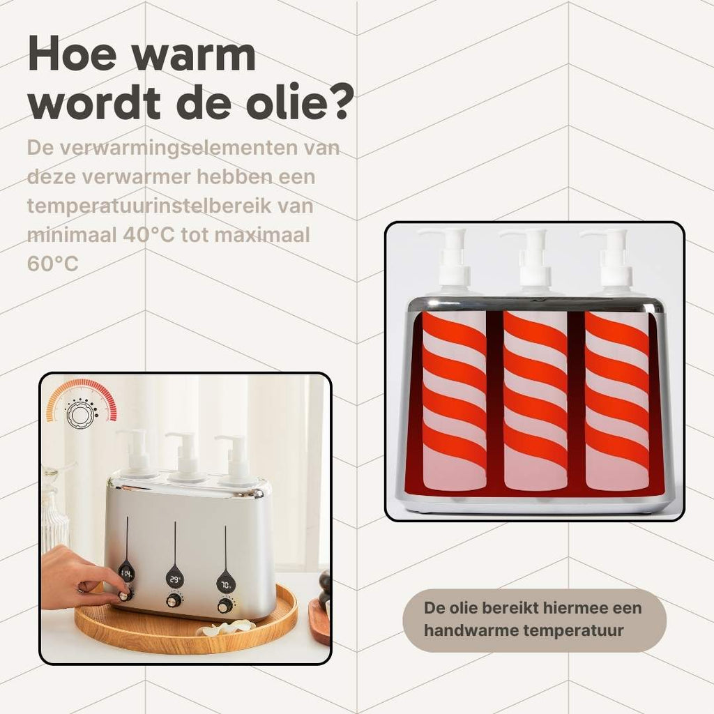 This 3-bottle massage oil warmer is your perfect partner, whether you're a professional massage therapist or simply want to enjoy a soothing experience at home!