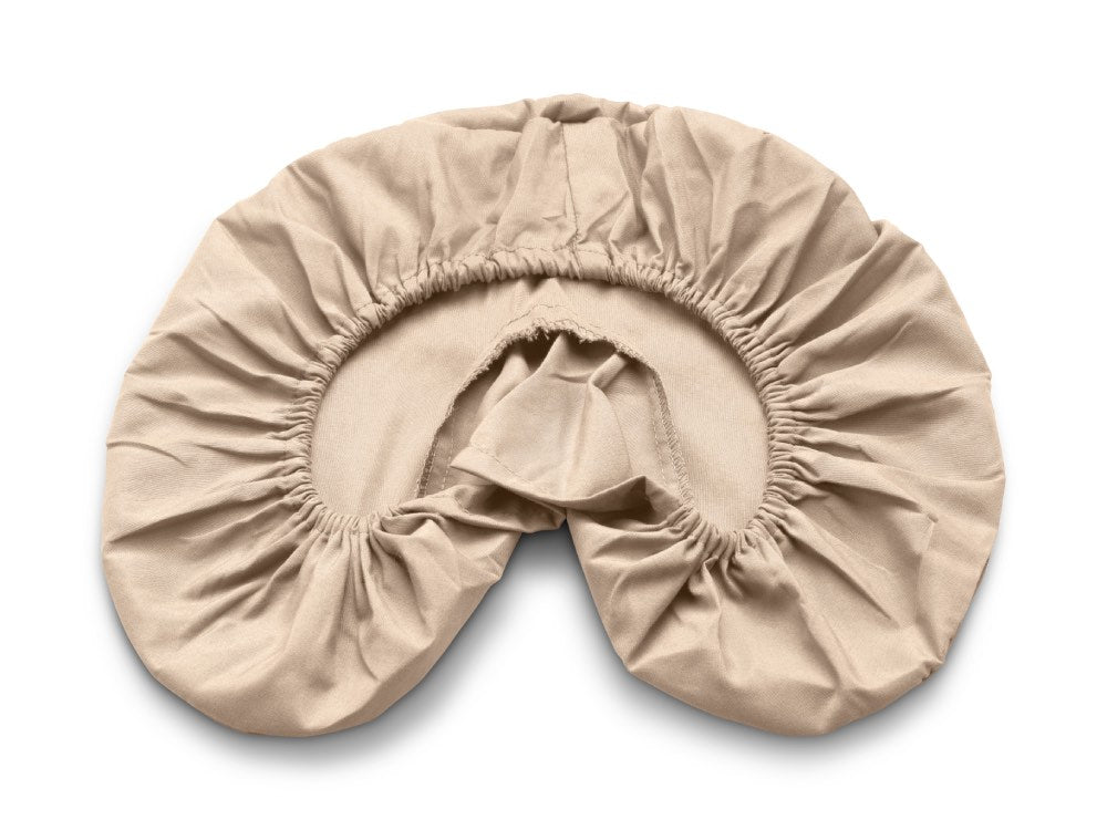 This light brown headrest cover is suitable for the headrest of a massage table or massage chair. The covers do not have Velcro or additional elastic, making them easy to fit over the headrest.