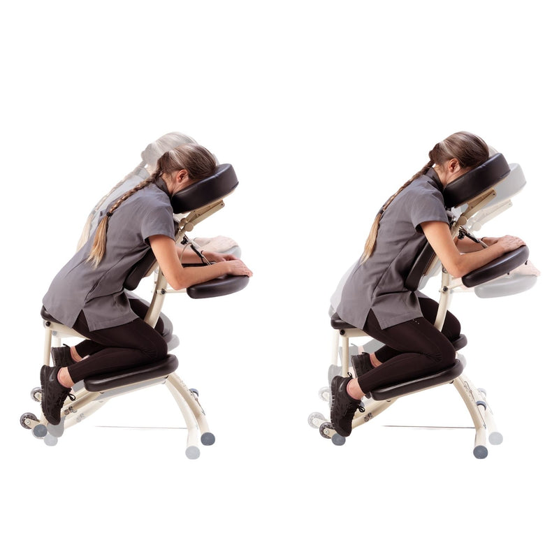 Ervaar de perfecte combinatie van vakmanschap en comfort. De stoel is gemakkelijk te verstellen, waardoor je zeker weet dat je cliënt comfortabel zit op de stoel. Zo kun je de stoel bij de hoofdsteun in hoogte, hoek en diepte verstellen, het borstkussen in de hoogte, de armsteun in de hoek, en de zitting in de hoogte. Ook kun je de werkhoogte van de stoel aanpassen aan de hand van de lengte van de masseur.