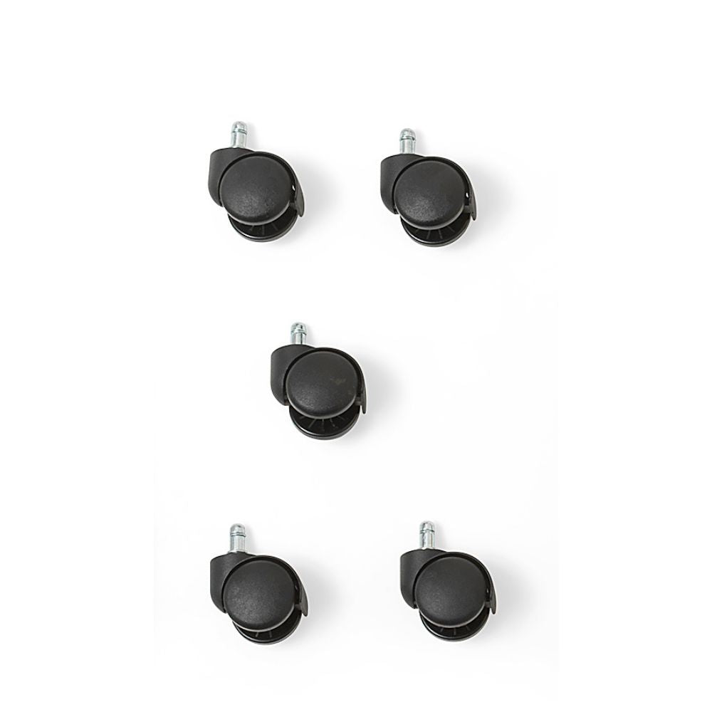 These swivel casters are made of hard plastic, making them ideal for soft surfaces like carpets. Our swivel casters feature an 11mm stem, fitting most bases for saddle chairs and stools.