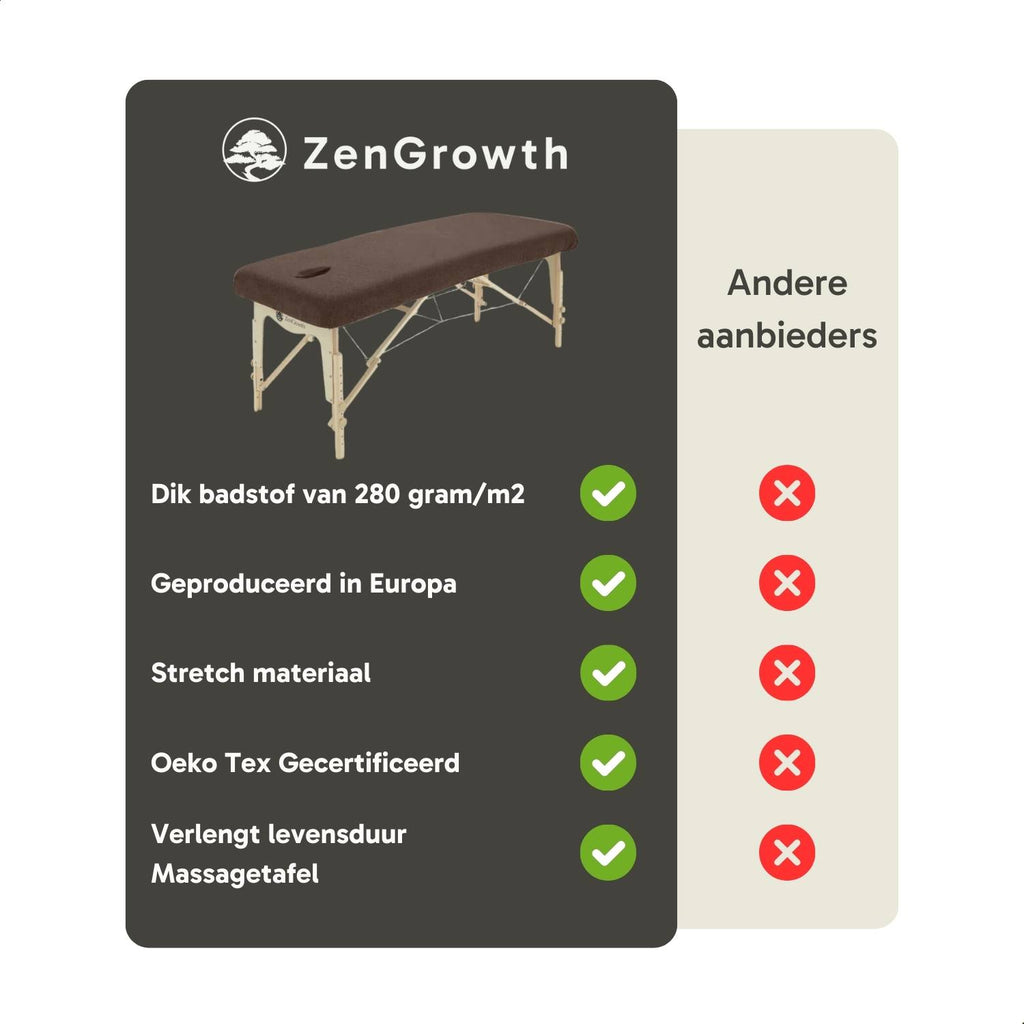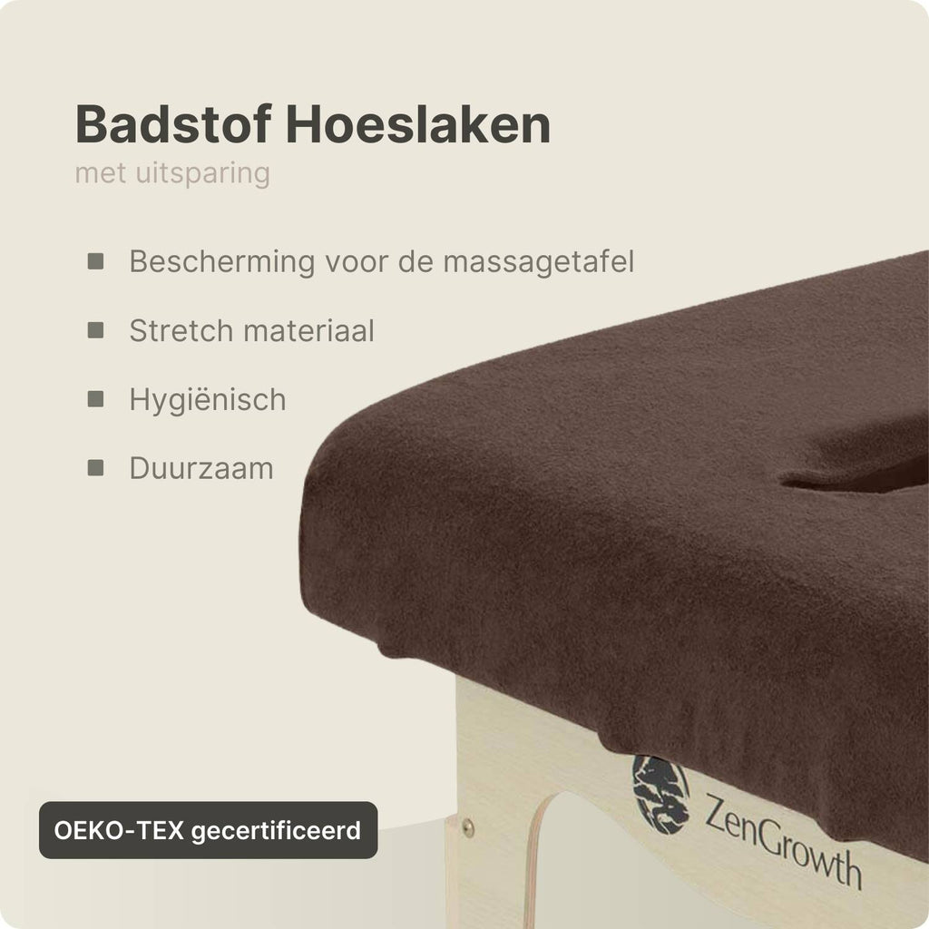 This chocolate brown fitted sheet with a face hole is suitable for multiple massage tables with a length between 180 cm and 185 cm and a width between 63 cm and 71 cm. The face hole is neatly finished to prevent tearing. The dimensions of the face hole are based on our ZenGrowth massage tables, but the fitted sheets can also be used for other massage tables with a face hole.