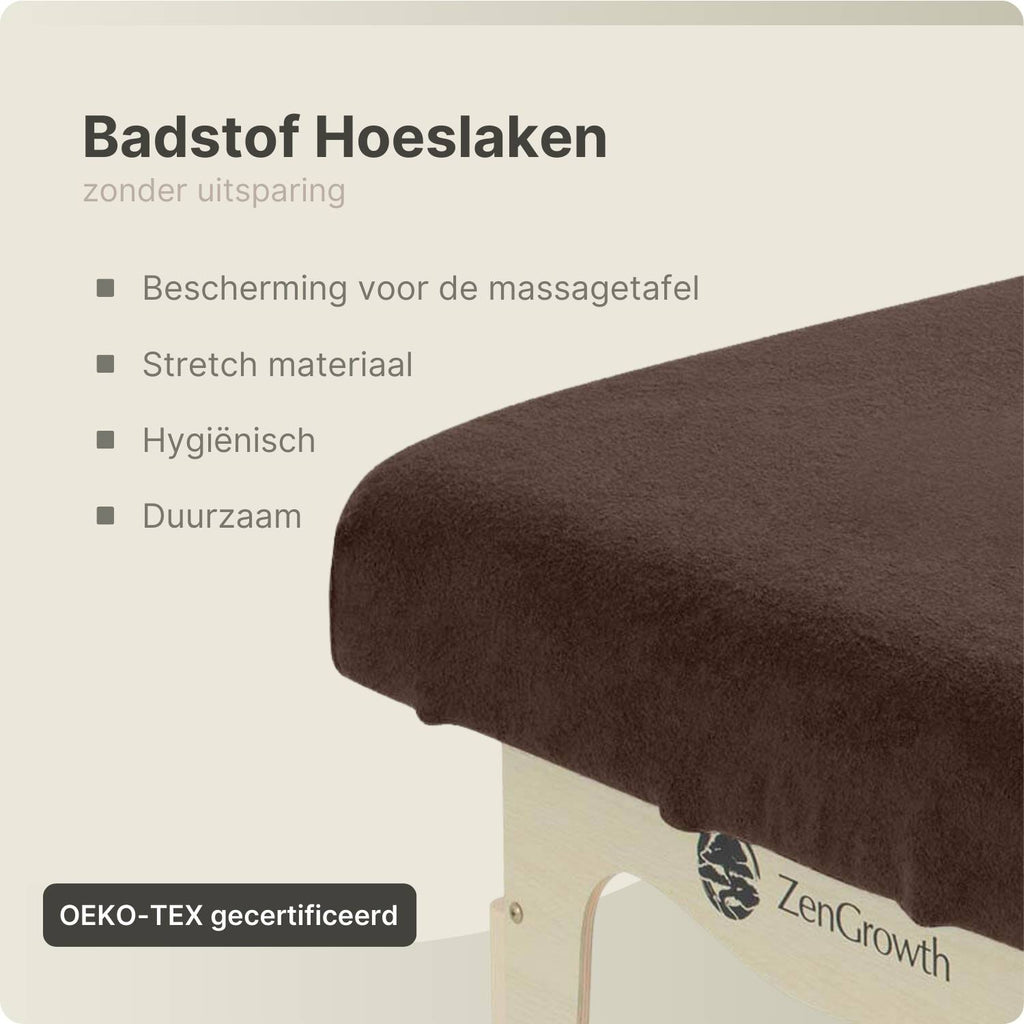 This chocolate brown fitted sheet with a face hole for a massage table is suitable for multiple massage tables, with a length between 180cm and 185cm and a width between 63cm and 71cm.