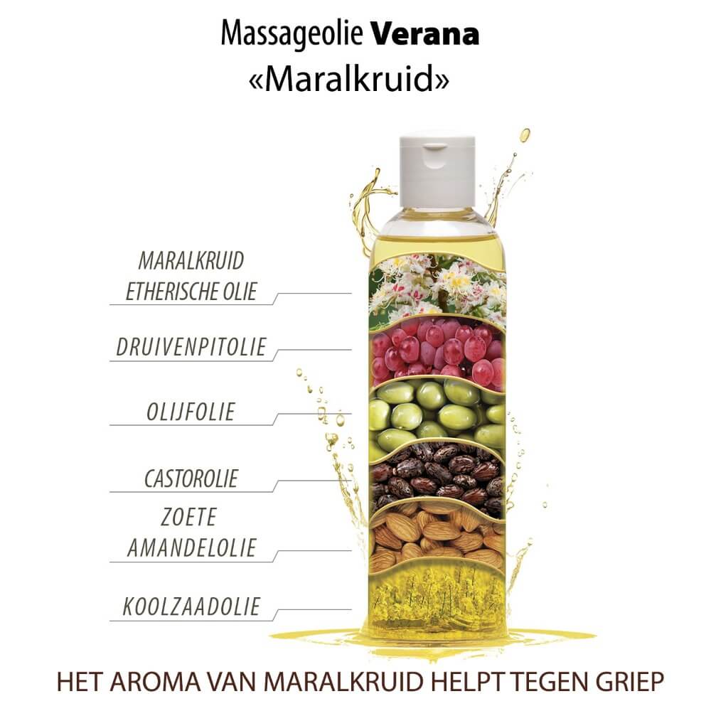 Like all Verana massage oils, this one is based on a unique blend of five natural oils (canola oil, castor oil, olive oil, grape seed oil, and almond oil). This blend supports skin rejuvenation, helps delay skin ageing, hydrates the skin, has anti-inflammatory properties, improves skin elasticity, and enhances overall skin condition.