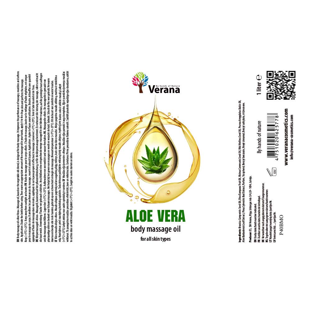 Verana Aloe Vera massage oil is a delightful summer massage oil with Aloe Vera extract. The extract is obtained from the first cold pressing of aloe vera plant leaves and has skin-protective and nourishing properties. It’s often used in cosmetics for skin irritations, sunburn, and skin conditions like eczema and acne. Aloe vera hydrates and soothes the skin.