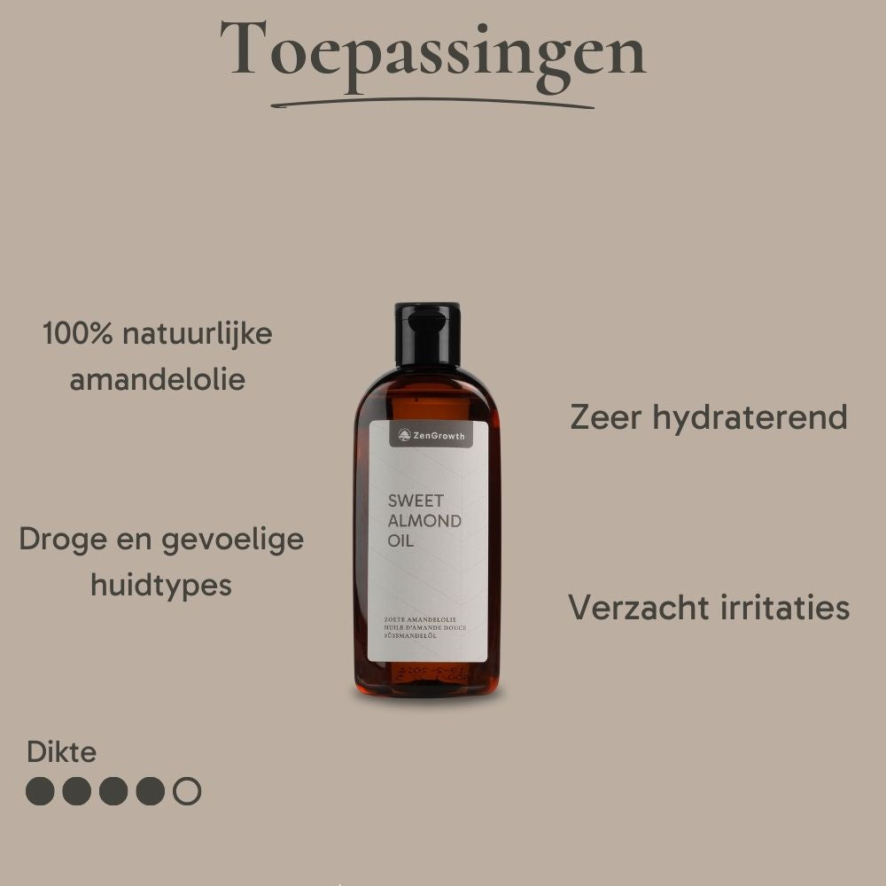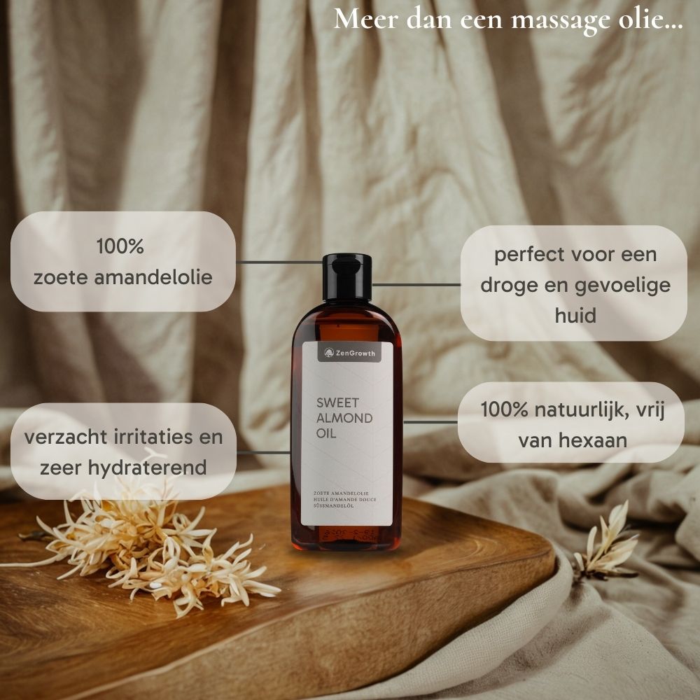 Sweet almond oil is essential for many massage practices due to its excellent viscosity, allowing it to absorb well into the skin. It also stimulates blood circulation and is very mild, significantly reducing the risk of allergic reactions. ZenGrowth sweet almond oil is odourless.