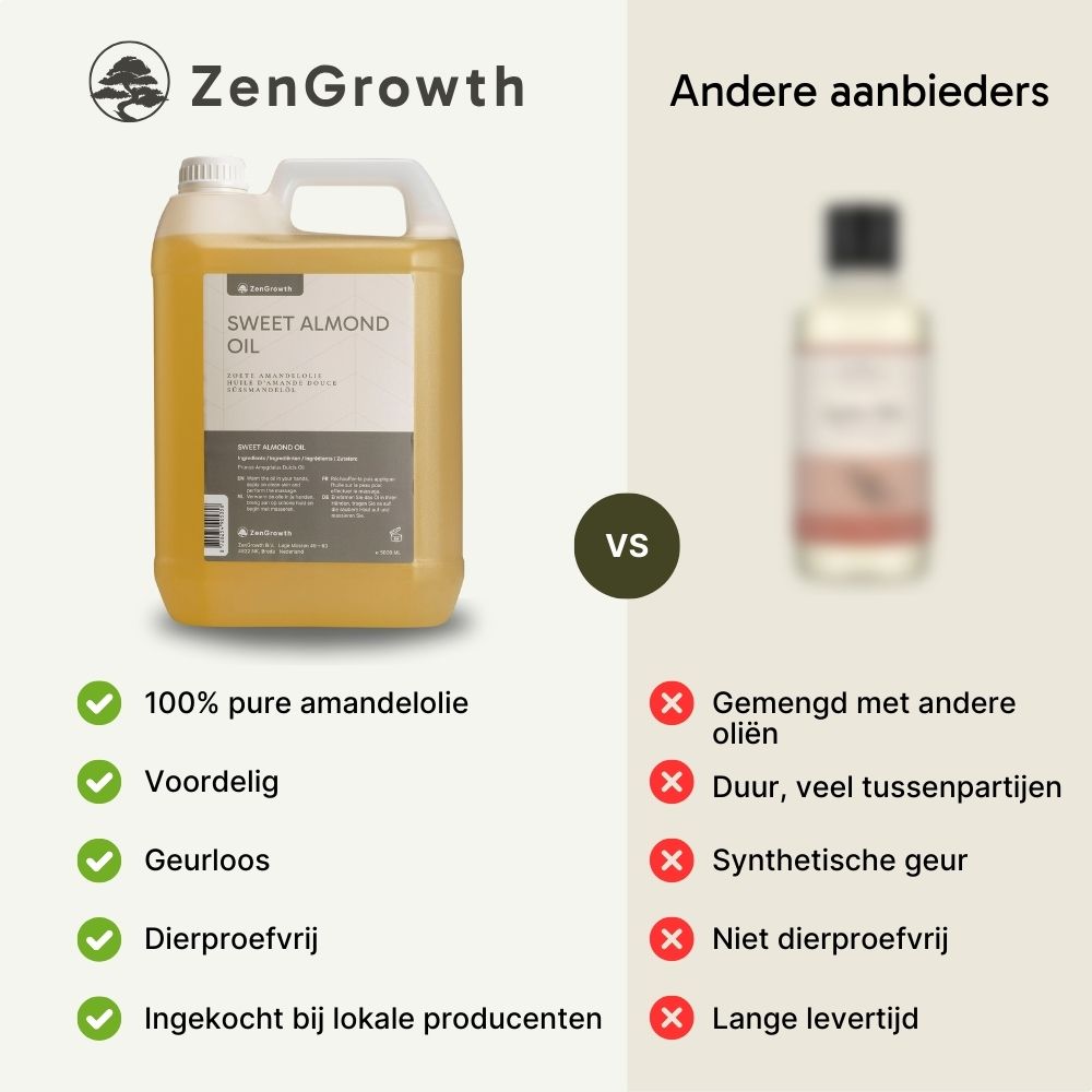 ZenGrowth sweet almond oil is fragrance-free and suitable for many skin types, especially dry skin. It is rich in vitamins A and E, helping to prevent skin ageing.