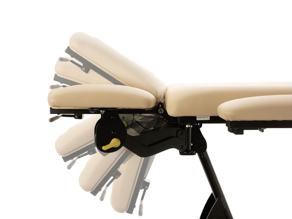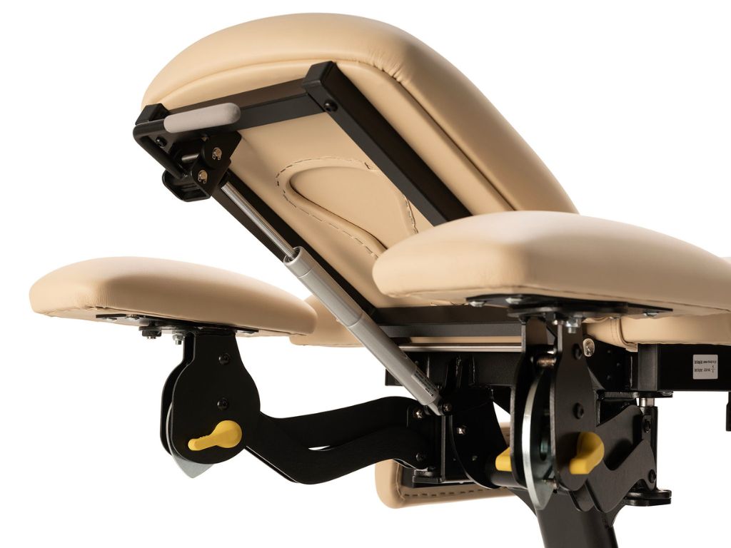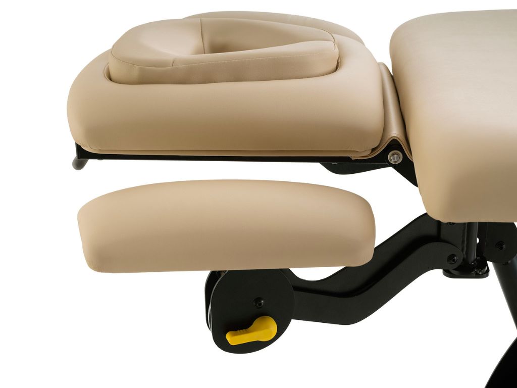 The Lagos massage table is unique in our range due to the various tilt and adjustment options. The table is easy to adjust in height with a smart all-round control by means of a foot ring. The width of 74 cm - with table extensions 84 cm - provides extra lying comfort. The height and angle adjustable armrests offer more freedom of movement during neck and shoulder treatment.