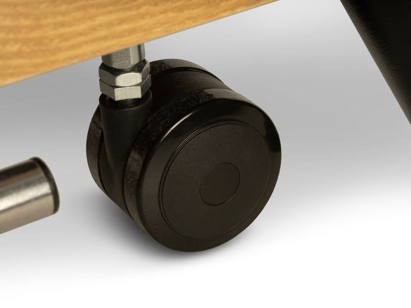 The sturdy frame guarantees maximum stability, even with intensive use. The integrated wheels ensure effortless movement without loss of stability. The upholstery of high-quality PVC leather is wear-resistant, water- and oil-resistant and remains beautiful for a long time with minimal maintenance. Although PVC leather is somewhat 'harder' than the PU leather we mainly use, this type of leather has a longer lifespan, because it lasts for years without flaking off.