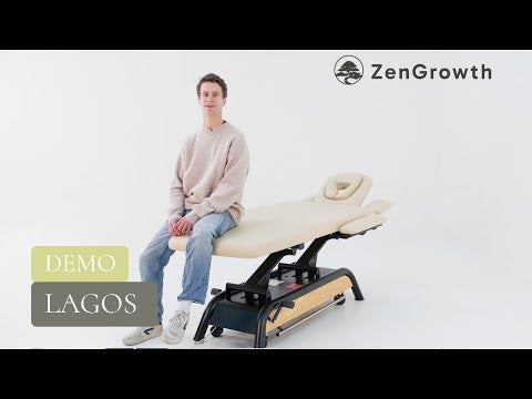 Discover the Lagos electric massage table, perfect for sports and deep tissue massages thanks to the firmer yet comfortable mattress. The table combines effortless adjustability, ultimate stability and a wide lying surface for an unparalleled massage experience. The modern accents mixed with natural wood elements provide a sleek yet soothing look in your practice.