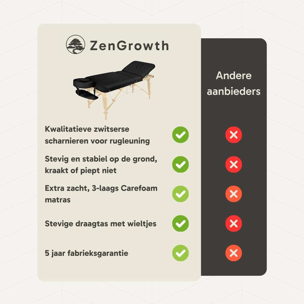 The ZenGrowth Nimman is a high-quality foldable massage table designed in collaboration with DeMassageWinkel. During its design process, we incorporated all the feedback from our customers, resulting in a massage table of unparalleled quality!