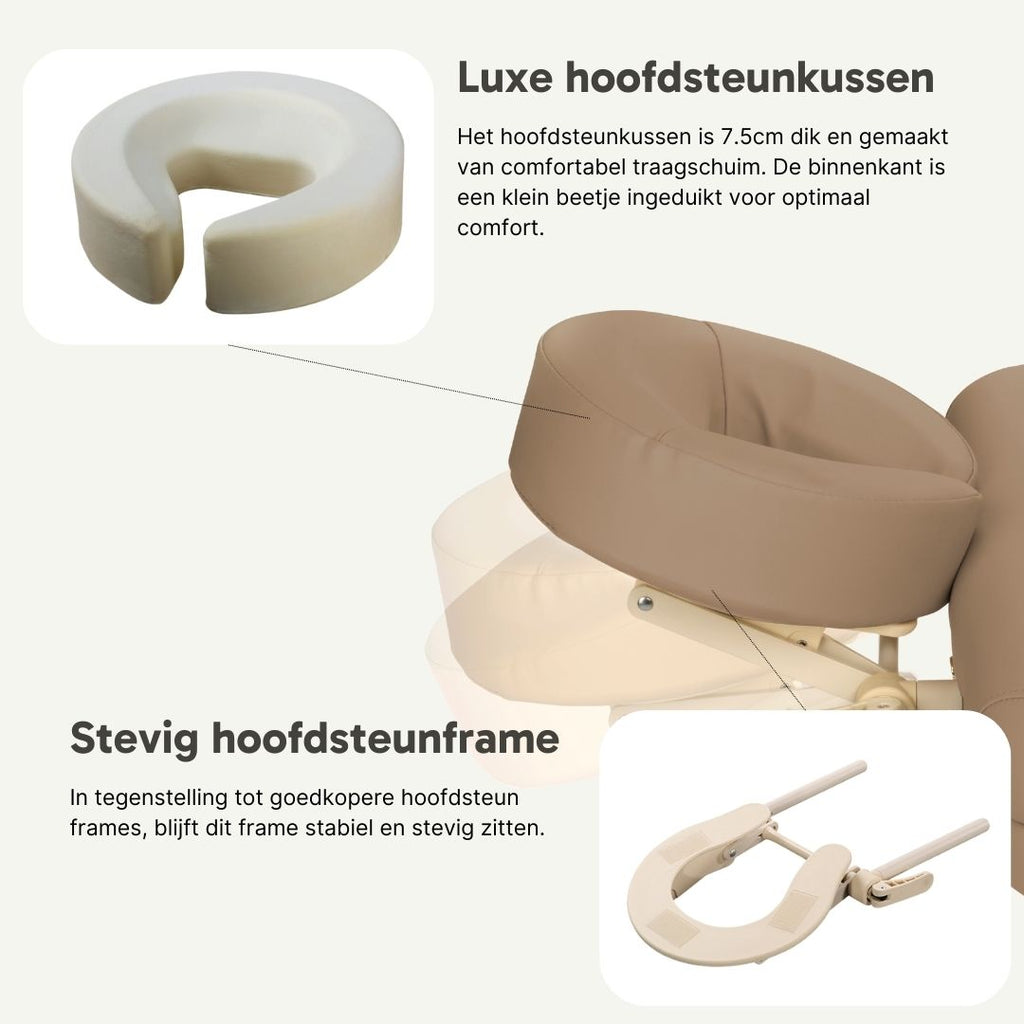 One of the most praised features of our premium massage tables is the comfortable headrest cushion, slightly indented on the inside. This design moulds to your client's face, allowing them to lie comfortably for hours without facial creases.