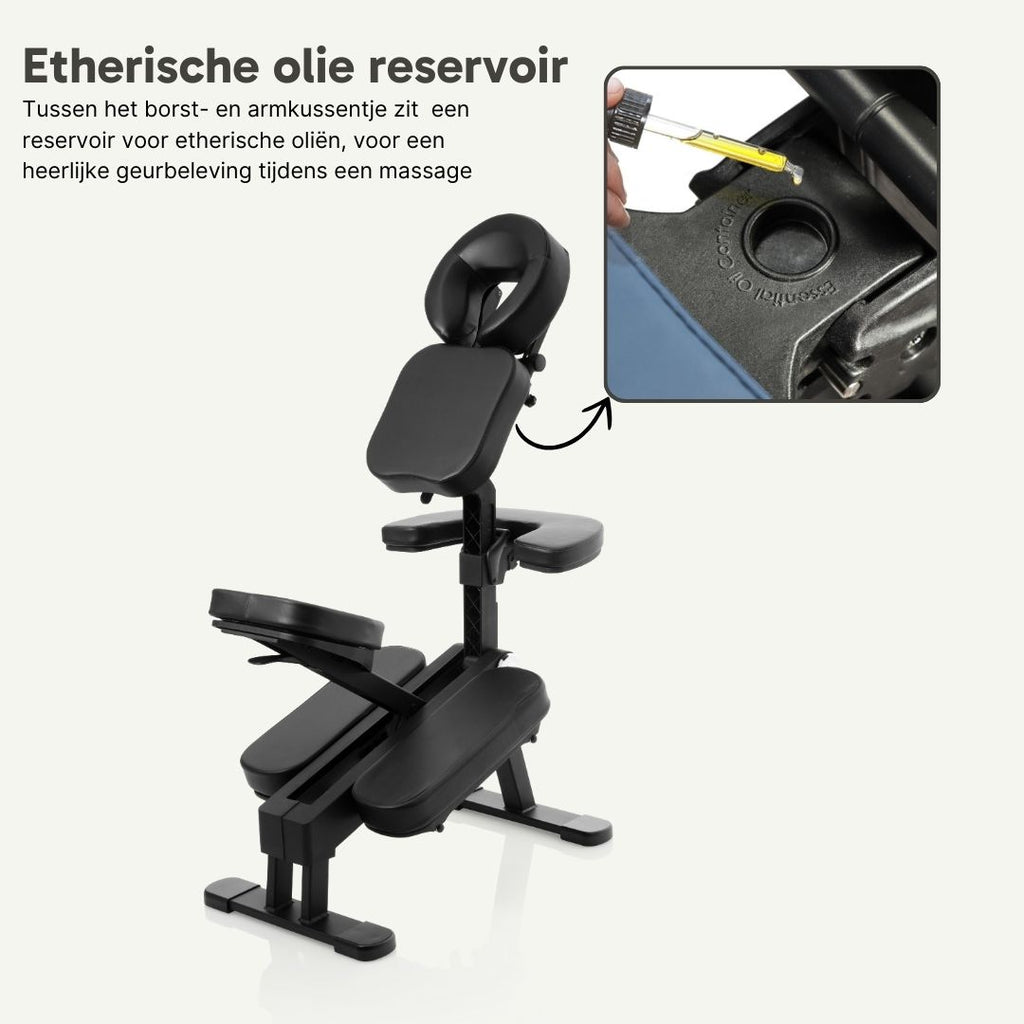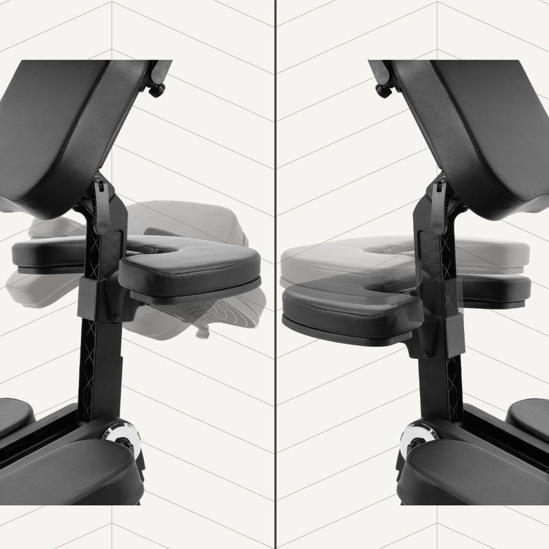 Experience the perfect combination of craftsmanship and comfort. The chair is fully adjustable in every imaginable way, ensuring that everyone can relax completely during a chair massage. Additionally, the chair comes with an extra sternum cushion for chest support, providing optimal comfort and positioning.