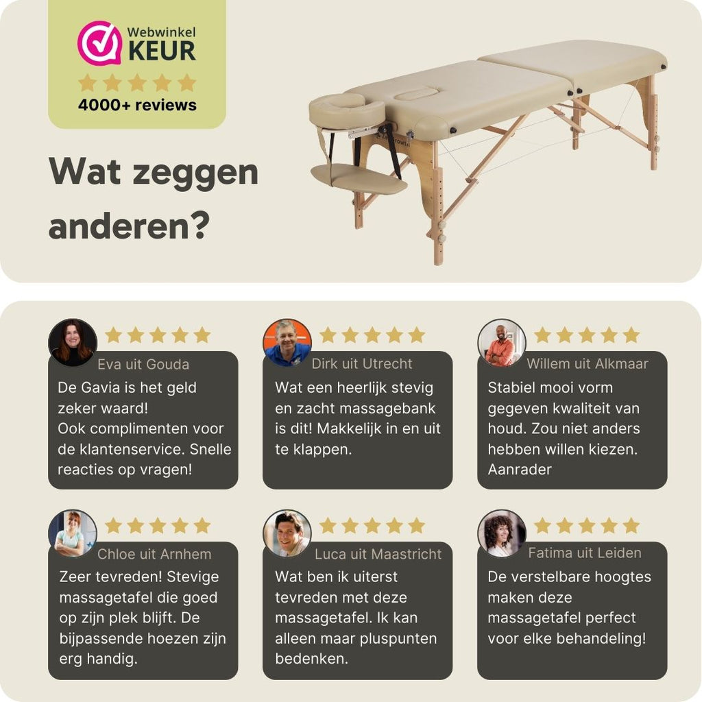 This massage table features an exceptionally thick mattress with 7.6 cm of high-quality foam, making it ideal for relaxation massages where client comfort is the top priority. However, the mattress is slightly firmer compared to that of the Belverde table. Additionally, the Gavia has a sleek design with rounded corners, enhancing its aesthetic appeal.