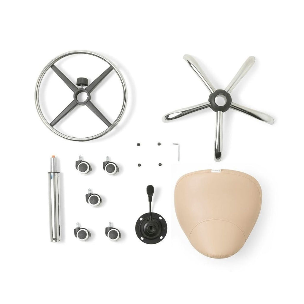 Depending on your desired seat height / working height, we have different gas springs. For example, do you work at a low table? Then the low gas spring is ideal! However, do you work at a high (massage) table? Then the high gas spring is ideal. That way you know for sure that you always choose the right working height.