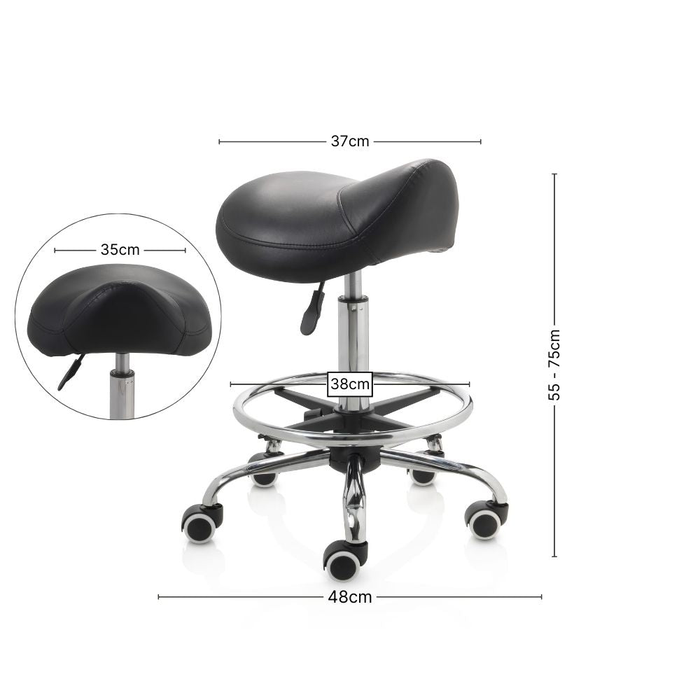 The saddle stool is extremely compact , so it doesn't take up much space. This makes them ideal for smaller spaces or situations where flexibility is important. In addition, the seat can rotate 360 ​​degrees and you can easily move it through a room.
