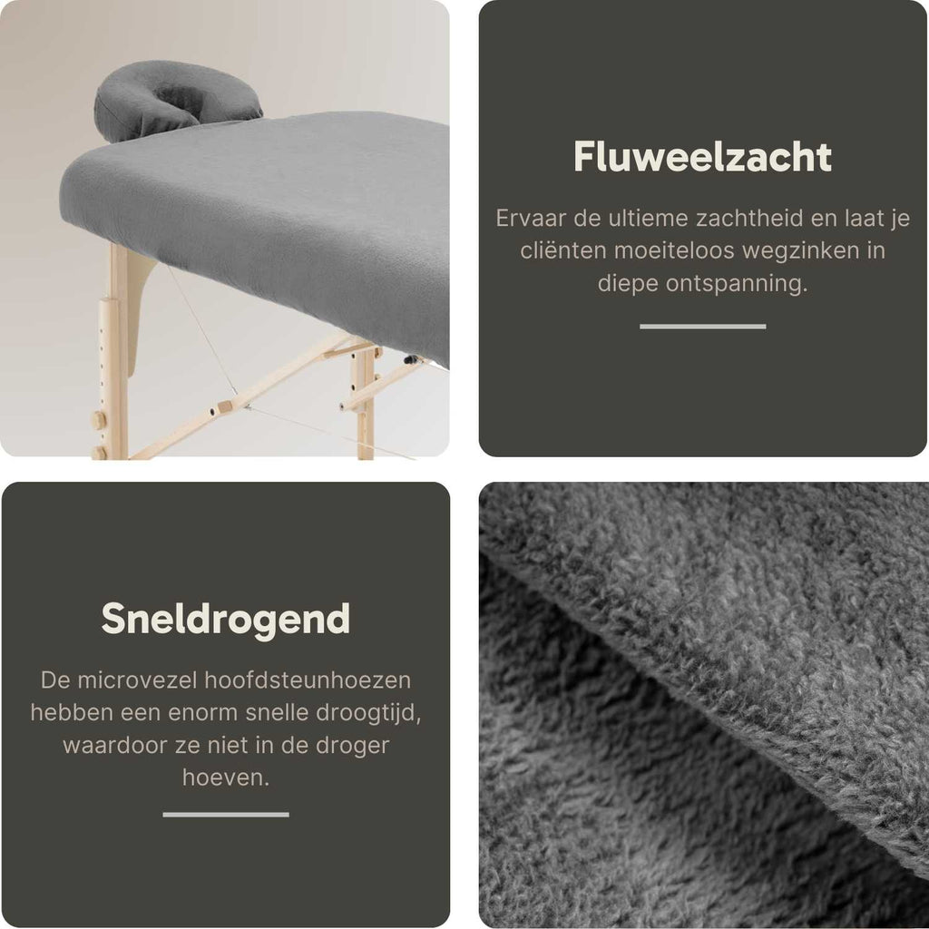 The subtle grey tone brings a sense of calm to your treatment space, while the high-quality microfibre material provides a silky touch that your clients will truly appreciate.