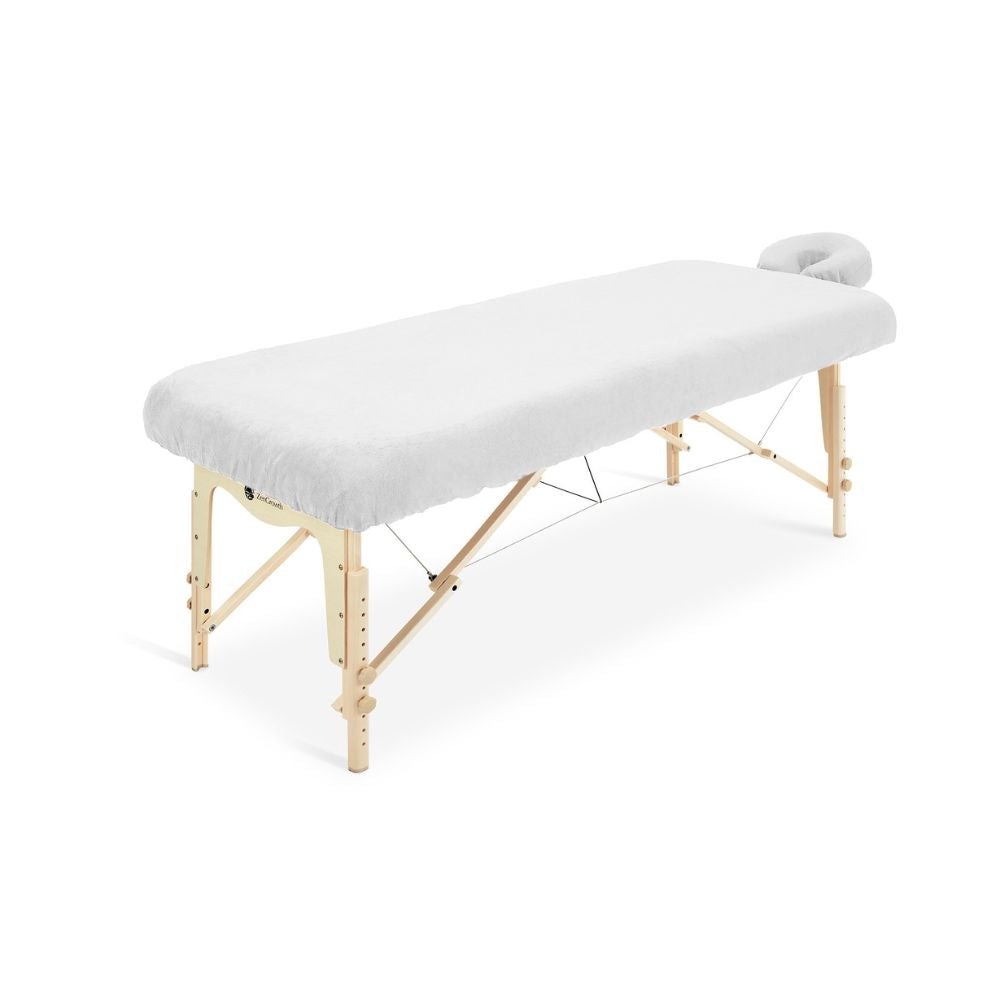 Enhance your clients' experience with our white microfibre fitted sheet with face cradle cut-out. Order today and add an extra touch of luxury to every massage session!